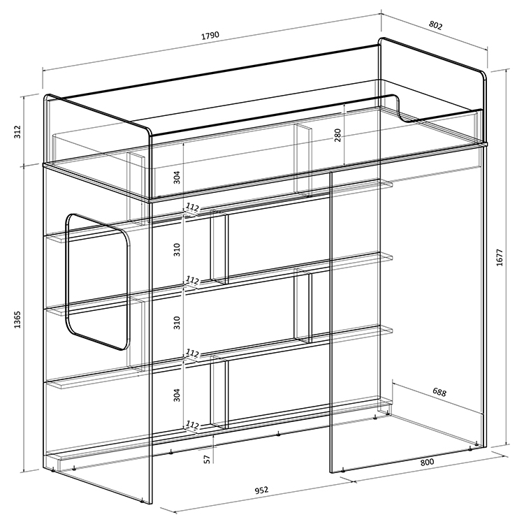 Высота кровати чердака всего 1677 мм.