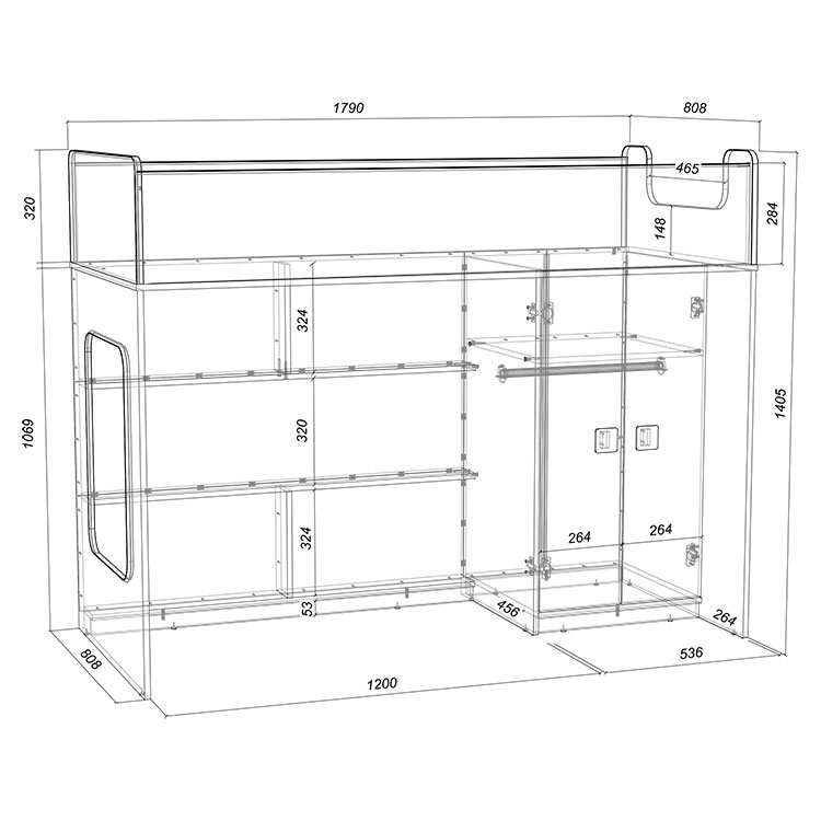 Встроенный прямой шкаф для хранения одежды, белья, игрушек или иных вещей.